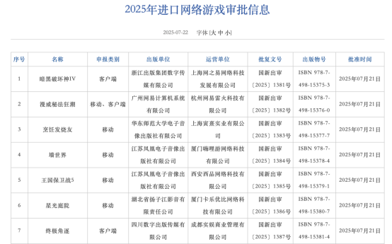 7月22日,国家新闻出版署官网公布了7月国产及进口网络游戏审批信息股票配资查询网址,共127款国产网络游戏获得版号,7款进口网络游戏获得版号,本月合计发放网络游戏版号134个,数量继续维持在高位。